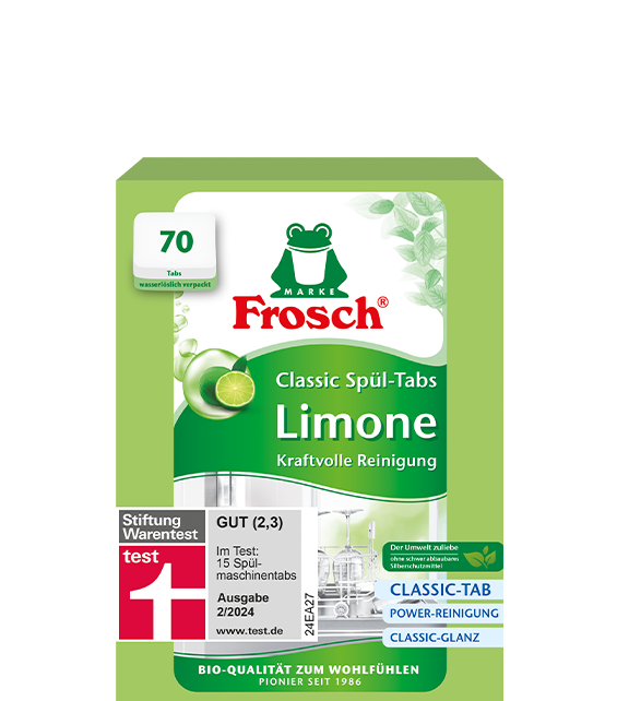 Your dishwasher doesn't need much to do its job thoroughly and reliably. Make sure to regularly refill the dishwasher salt and rinse aid or simply use multi-tabs such as the Dishwashing tabs All-in-1 Green Lemon. They already contain rinse aid and salt and therefore care for your dishwasher with every cycle.